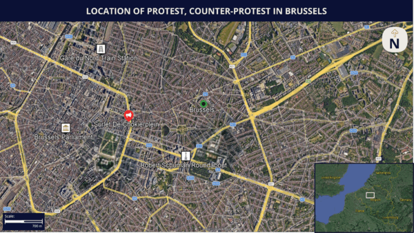 - While recent far-right and far-left mobilizations in Brussels have generally drawn attendance in the mid- to high dozens, the heightened sentiment surrounding this incident, accompanying media coverage, and traction across social media platforms will likely increase turnout. The scheduled far-right protest and counter-protest are therefore likely to attract participants in the mid to high hundreds each.