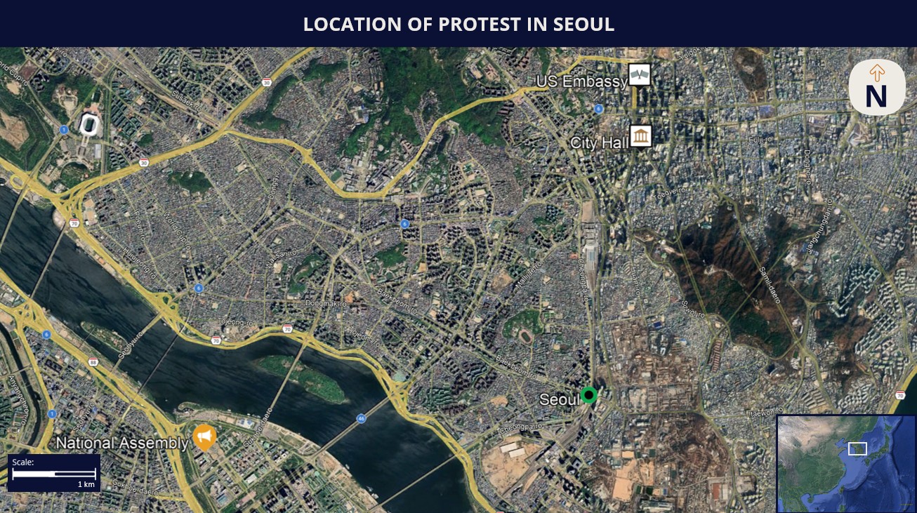 Those operating or residing in Seoul on March 17 are advised to maintain vigilance in the vicinity of the National Assembly due to the slated protest and associated latent risk of scuffles while allotting for travel disruptions.
