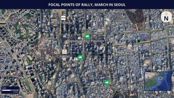 - Activists will hold a rally at the Bosingak Bell Pavillion in Seoul’s Jongno District at 19:00 (local time) on December 10. This will be followed by a march via the Euljiro 1(il)-ga Station, Bank of Korea roundabout, Hoehyeon roundabout, and will conclude at Sejong Hotel on the day.